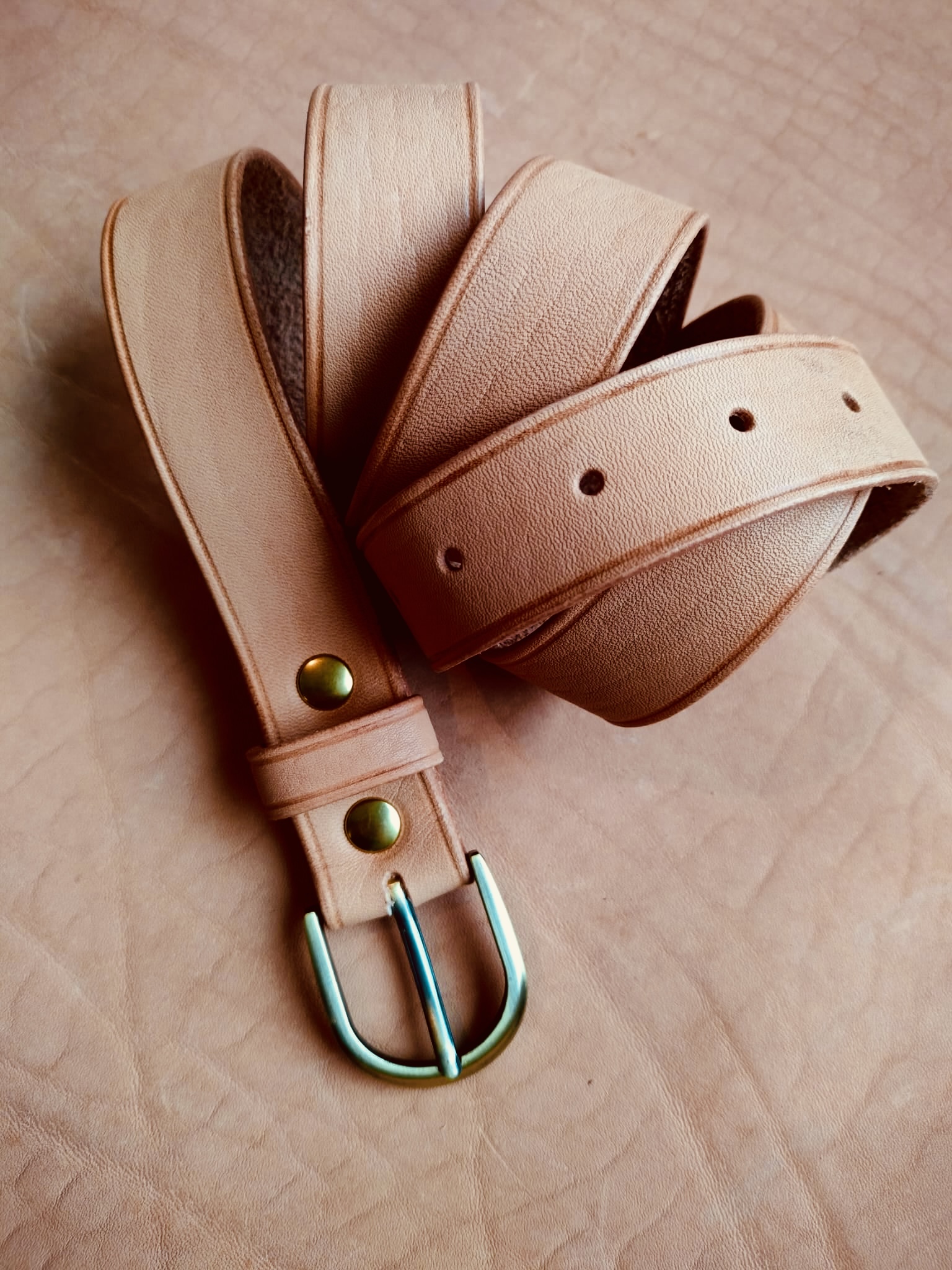 Kvaliteetne taimpargitud veisenahast püksirihm, on valmistatud meie enda veisenahast käsitööna. Kasutame ainult täisnahka, mille vastupidavus ja loomulik tekstuur tagavad aastatepikkuse kasutuse. Taimparkimine on keskkonnasõbralik meetod, kus naha töötlemiseks kasutatakse taimseid parkaineid – see säilitab naha loodusliku tugevuse ja kauni välimuse.